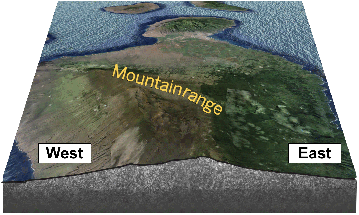 Show how the rain shadow effect happens on Maui.