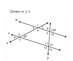 Using the diagram above, if the measure of angle 2 is 52 degrees, find each angle measure.