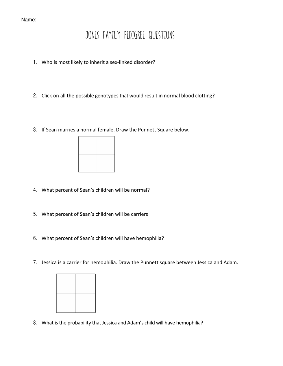 Look at #10, What % of Sean's children will have hemophilia?
