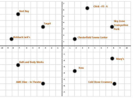 Barry and his dad are at Sky Zone. After that, they walk to grab a smoothie from Stone Cold Creamery. Finally, they walk to the AMC Theatre to watch a movie. How far would they have to walk to go straight back to Sky Zone from the AMC Theatre. Round your answer to the nearest whole value.