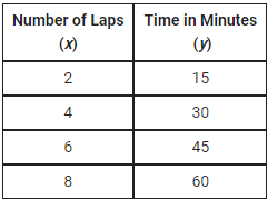 John walks laps around a track. The table below shows the time it takes John to walk different numbers of laps around the track.