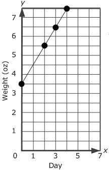 Yasmin’s kitten weighed 3.5 ounces at birth. The kitten gained one ounce per day for the first four days. Yasmin recorded the kitten’s weight on the graph below.