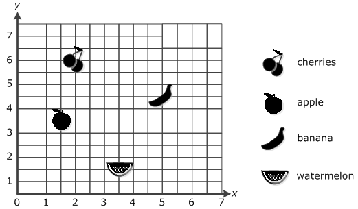Which ordered pair describes the location of the apple on the coordinate plane?
