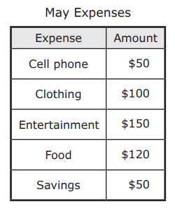 Penelope earns $450 each month. Penelope made a list of her expenses for the month of May.