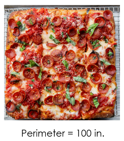 Chef Aubrey wants to create two different types of pizza pies for your party. She decides to use a piece of string to outline the perimeter of each pizza pie. She has a string that is 100 inches long. For her second pizza, she decides to make a circular pizza. Again, she uses the entire length of the same string to outline the circumference of the circular pizza.