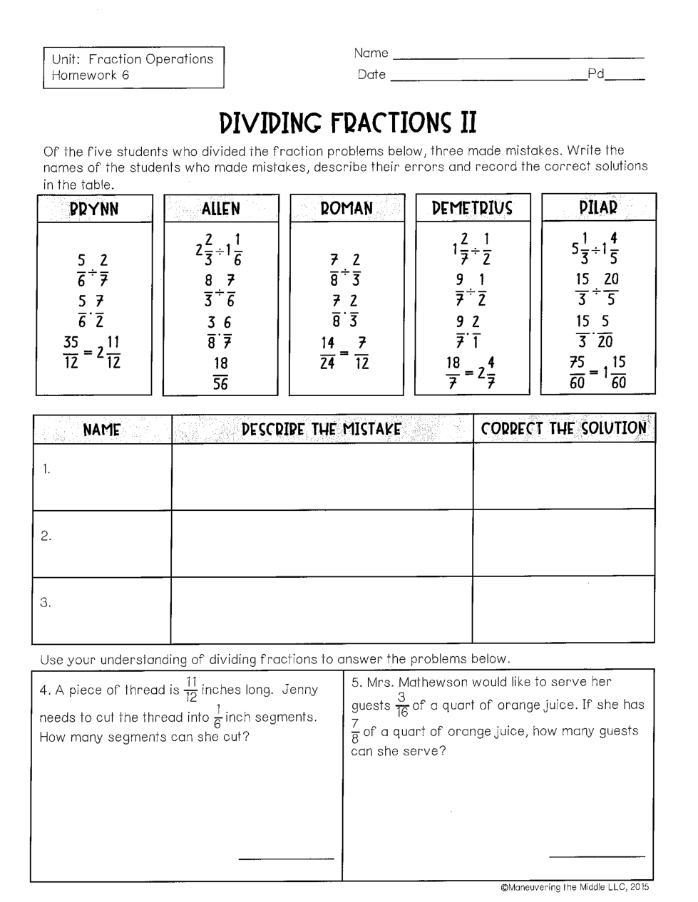 Choose one of the incorrect students and give the correct answer in lowest terms or as a mixed number._______ _______