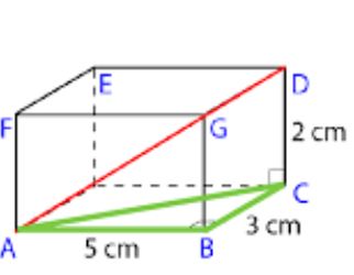 Triangle ABC has side lengths 5cm and 3cm. Triangle ACD has one known side length of 2cm.