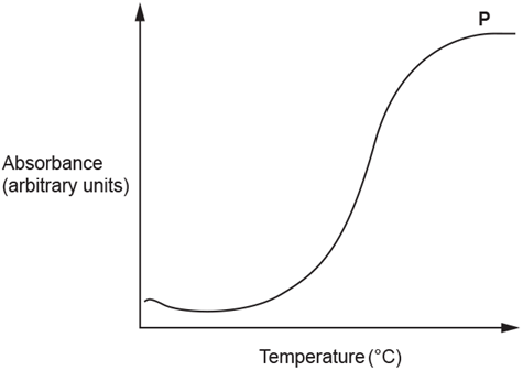 The graph shows reading from a colorimeter as pigment leaks out of beetroot membranes at different temperatures. Which statement explains why the absorbance stops increasing at point P?
