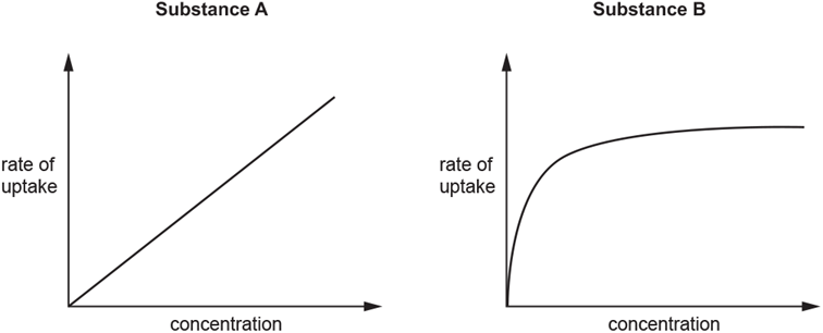 The rate of uptake was measured at different concentrations of each substance in the medium surrounding the cells. i. The student concluded that one substance entered the cells by simple diffusion and the other by active transport.