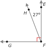Observe the angle below. Angle EFH is 27 degrees.