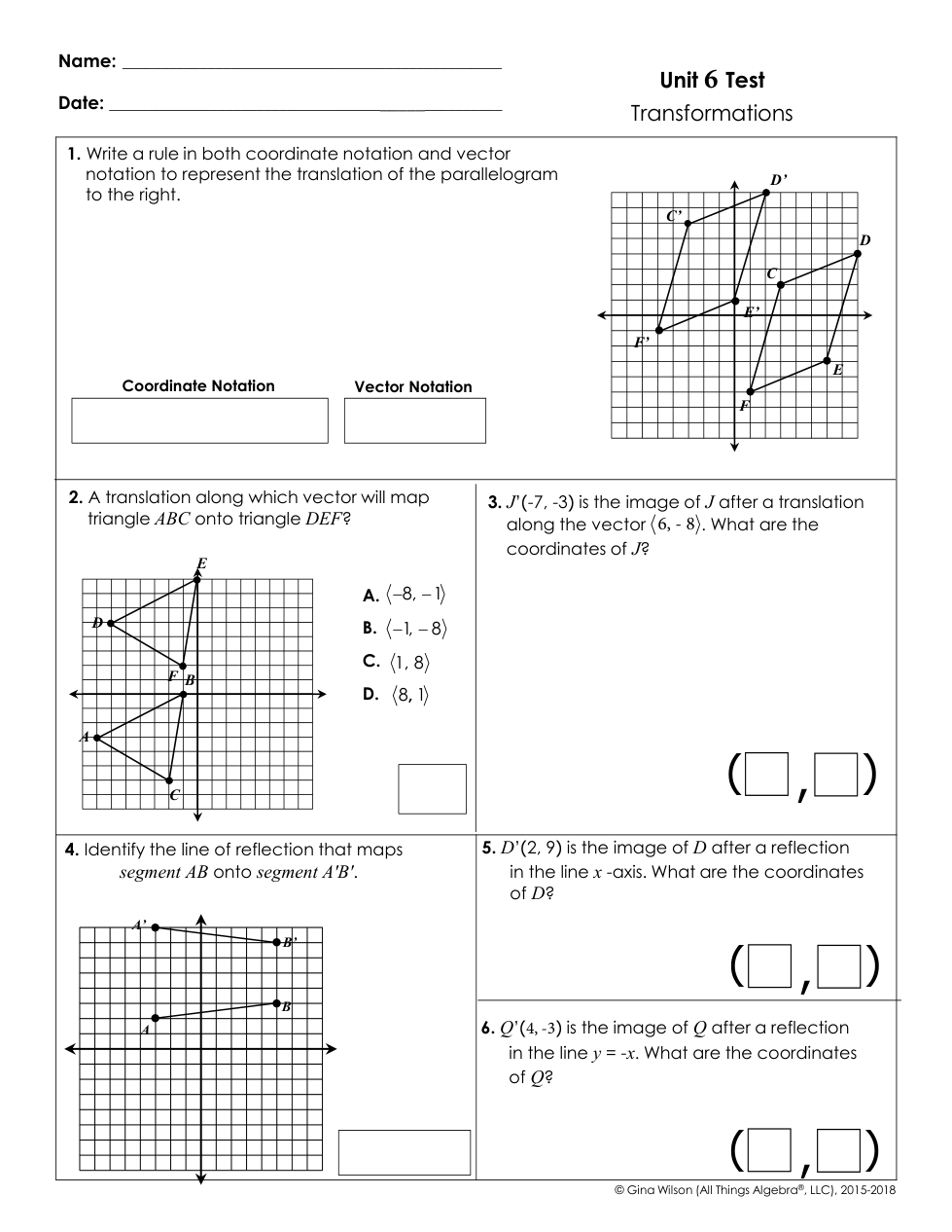Wk 25: EOL: TEST Unit 6 Tranformations