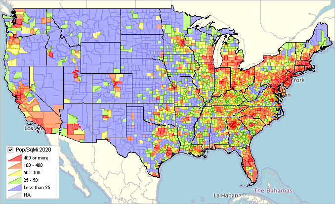 Which side of the country has a higher population density?