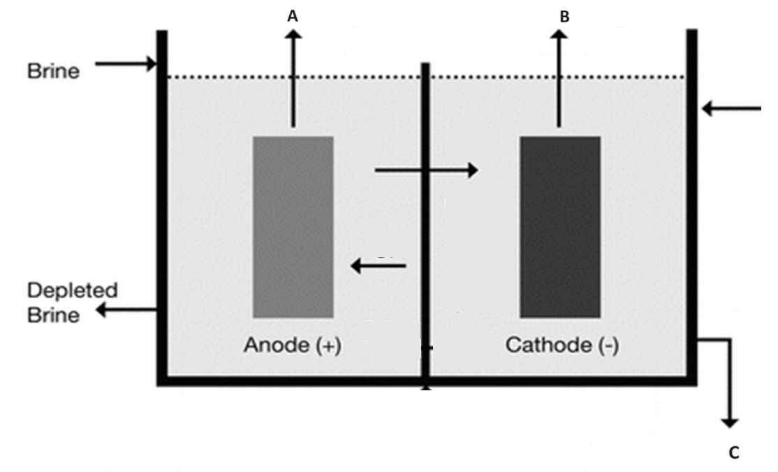 Consider the following mebrane cell. Concentrated brine is pumped into the anode compartment.