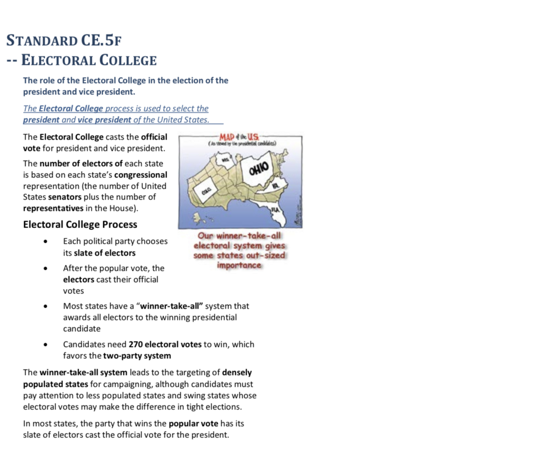 SOL CE.5f - How does the electoral college and the winner-take-all system impact campaigns?