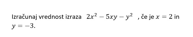 Izračunaj vrednost izraza za dane vrednosti spremenljivk (naloga zgoraj).