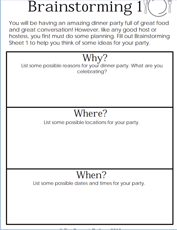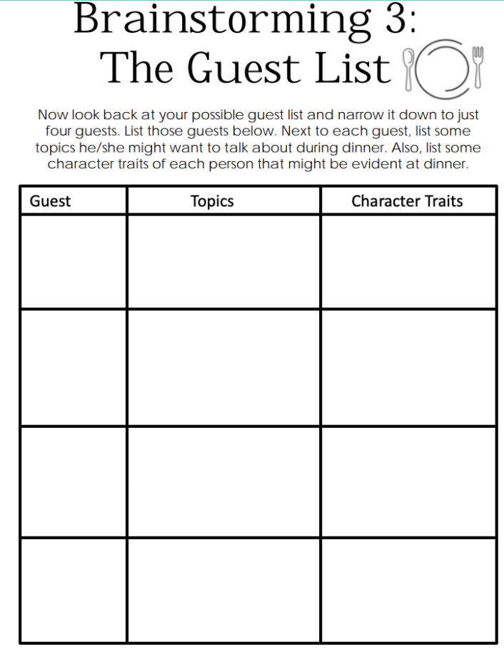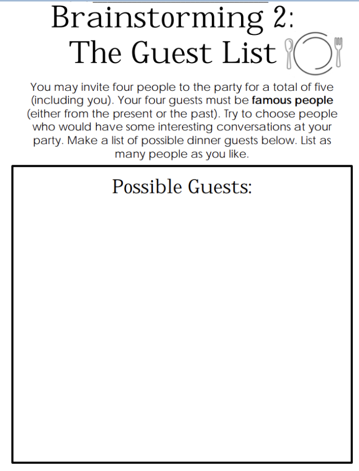 Make a list of all possible guests you would want to have at your dinner party, either from the past or present.