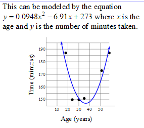 Using this model, what would be the fastest time for a 77 yr old ? (Round your answer to nearest tenth.)