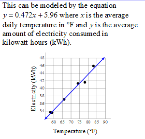 Using this model how much electricity would be consumed if the average daily temperature was 69 degrees ? (Round to nearest whole number)