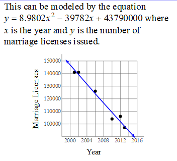 Using this model, how many marriages licenses would you expect to be issued in 2018?
