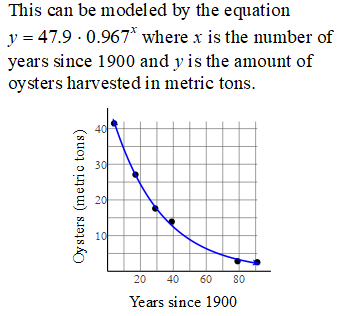 Using this model, how many metric tons of oysters were harvested in 1952? Round your