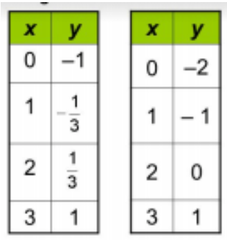 The tables of ordered pairs represent some points on the graph of lines f and g. Which system of equations is represented by the lines f and g?