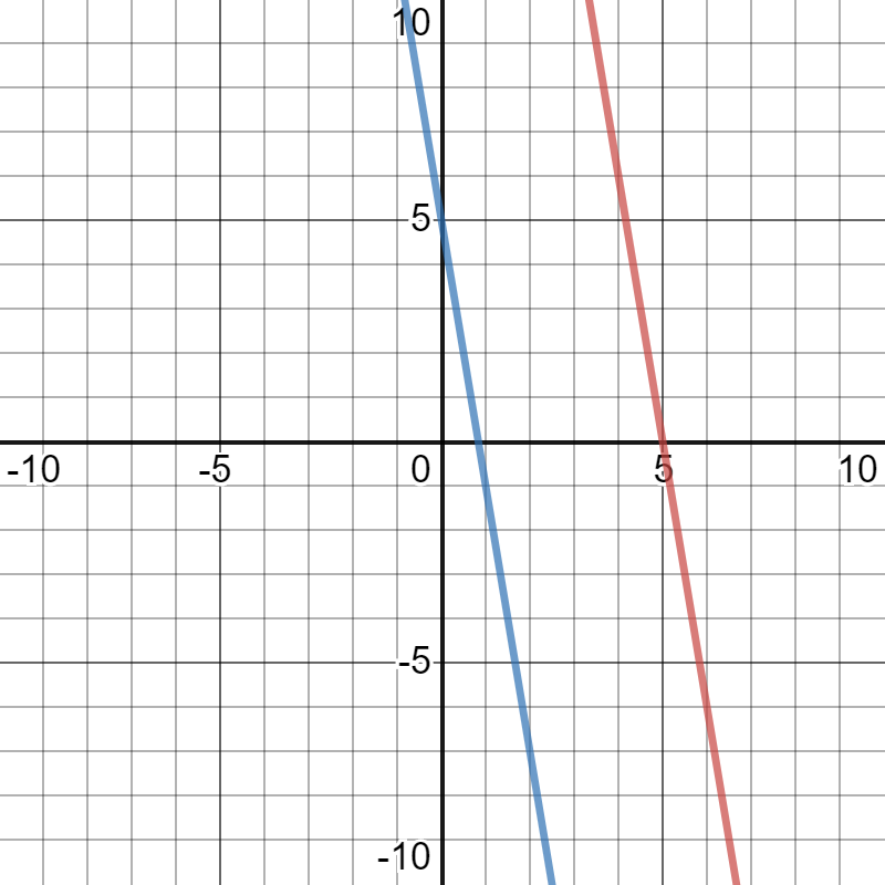 Plot the solution to the system of equations below?y=\frac{1}{2}x-4y=-4x+5