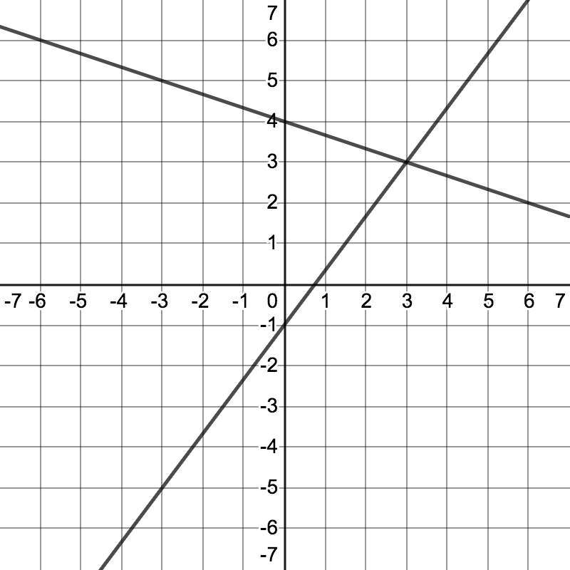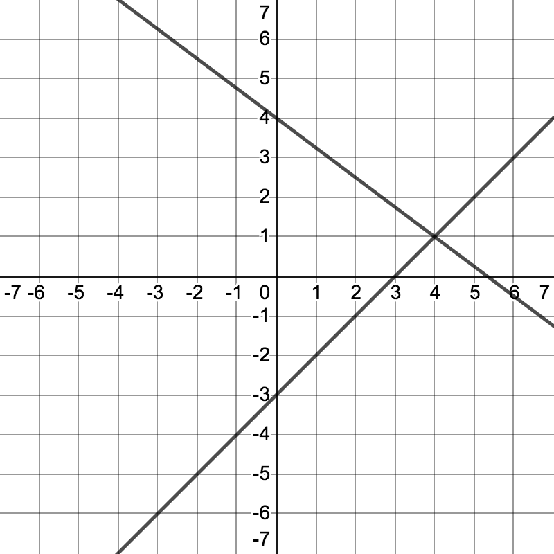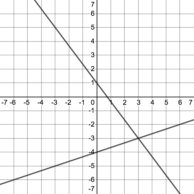 Which graph best represents this system of equations and it solution?3x - 4y = 16x + y = 3