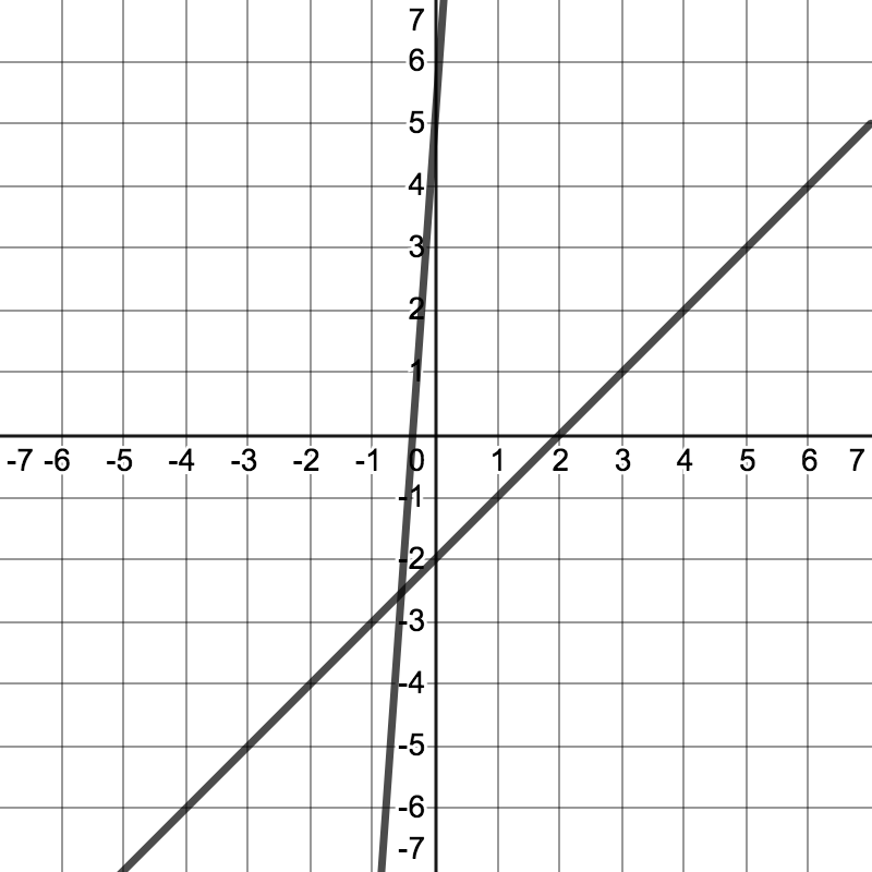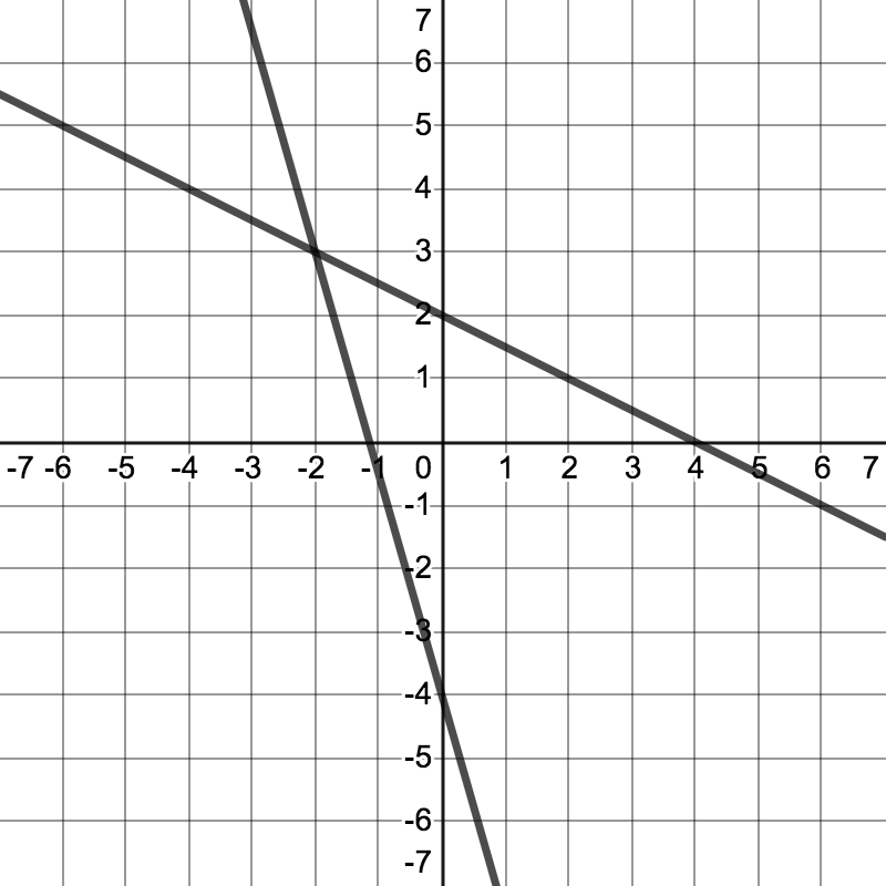 y=-\frac{1}{2}x+2 y=-\frac{7}{2}x-4 | arrow_right_alt | |