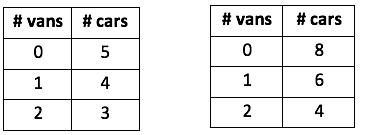 The tables of ordered pairs represent some points on the graph of lines. Give the systems of equations that represents the lines.