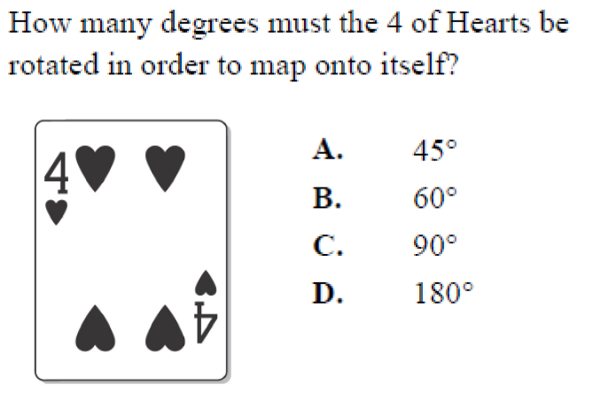 How many degrees must the 4 of Hearts be rotated in order to map onto itself?