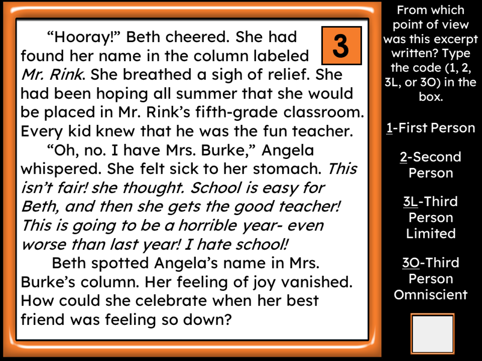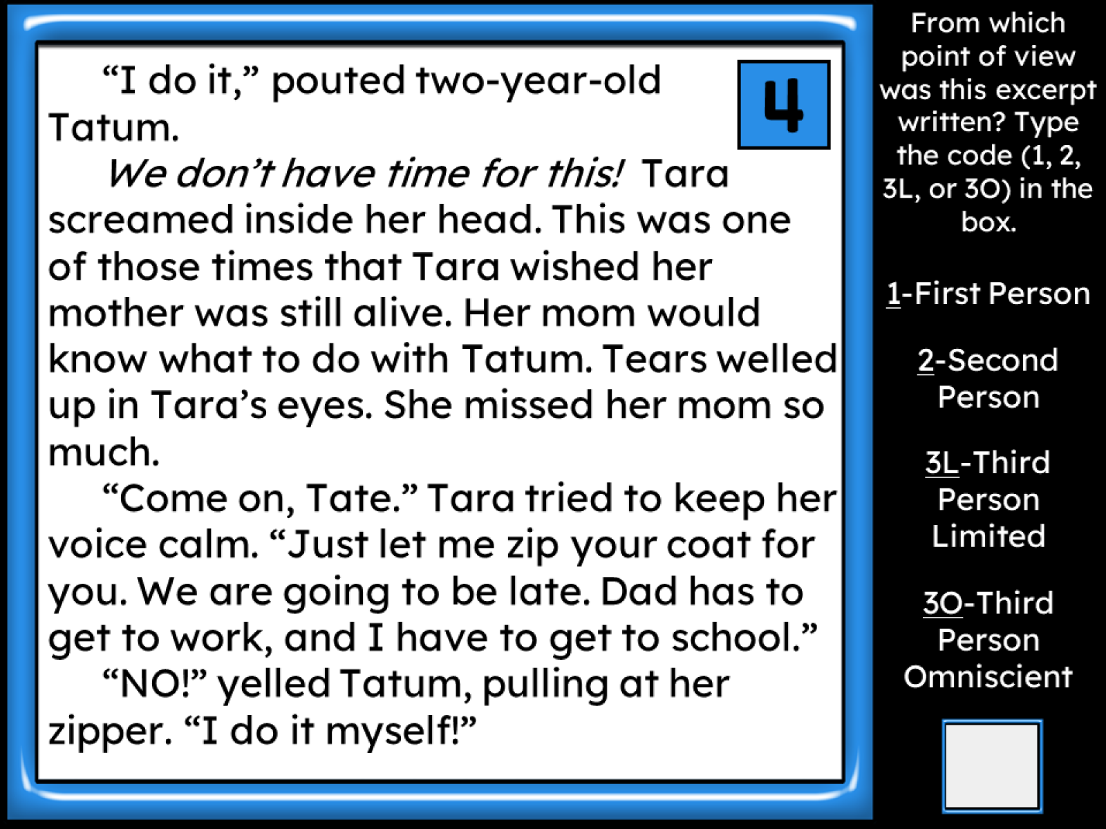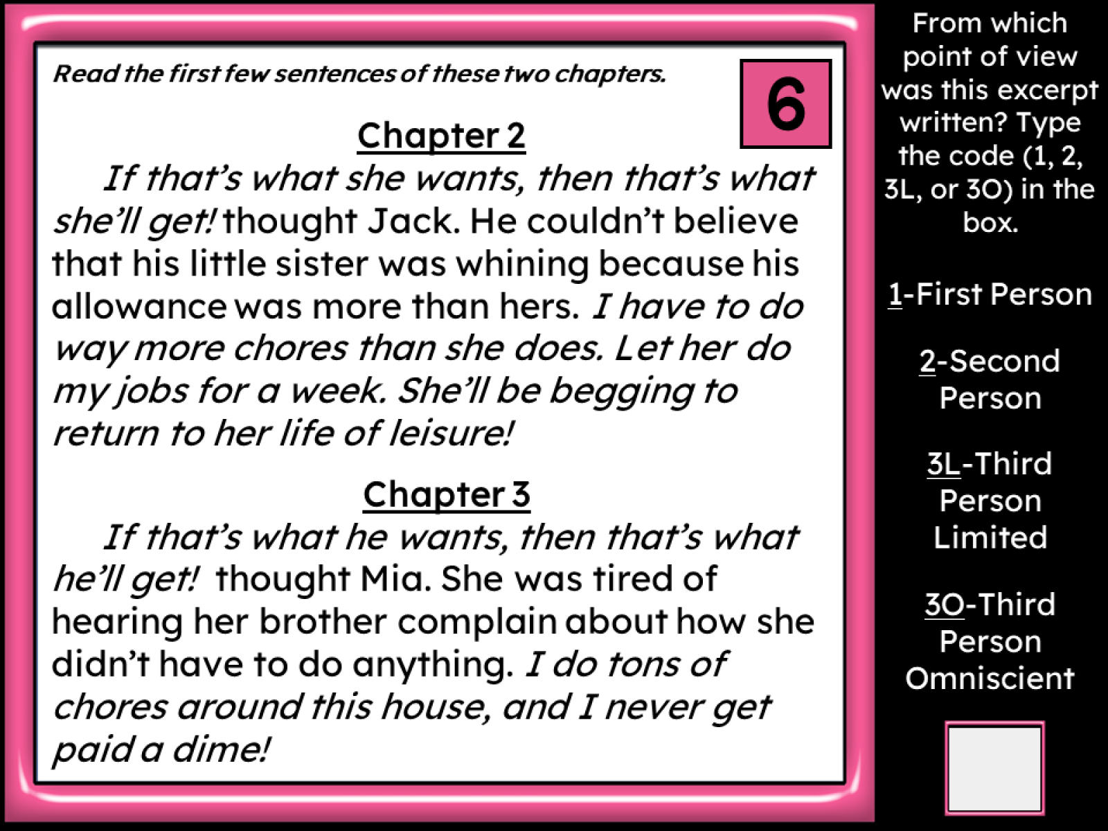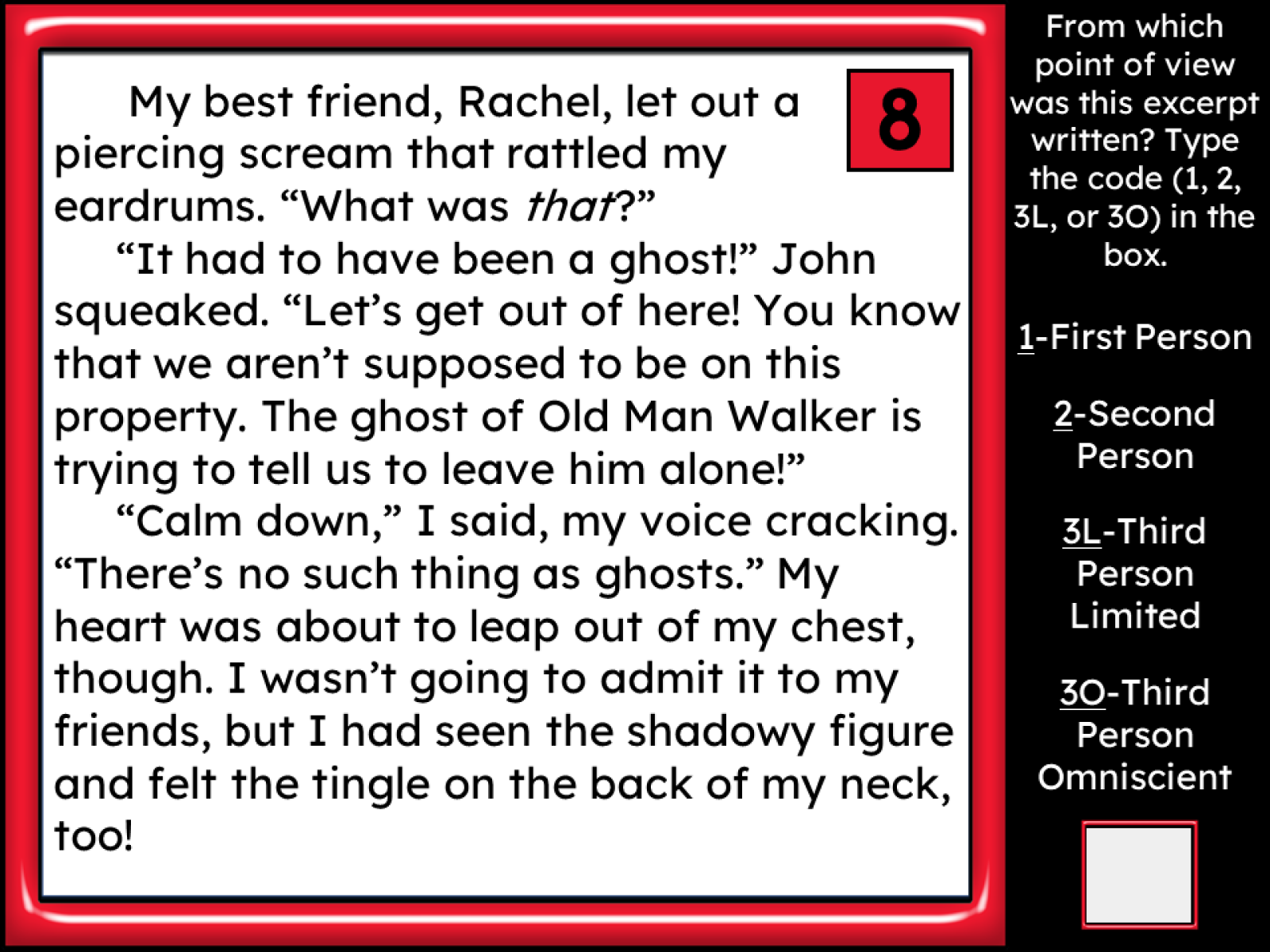 What is the point of view? (Remember to mark out the dialogue and see what pronouns are left.)