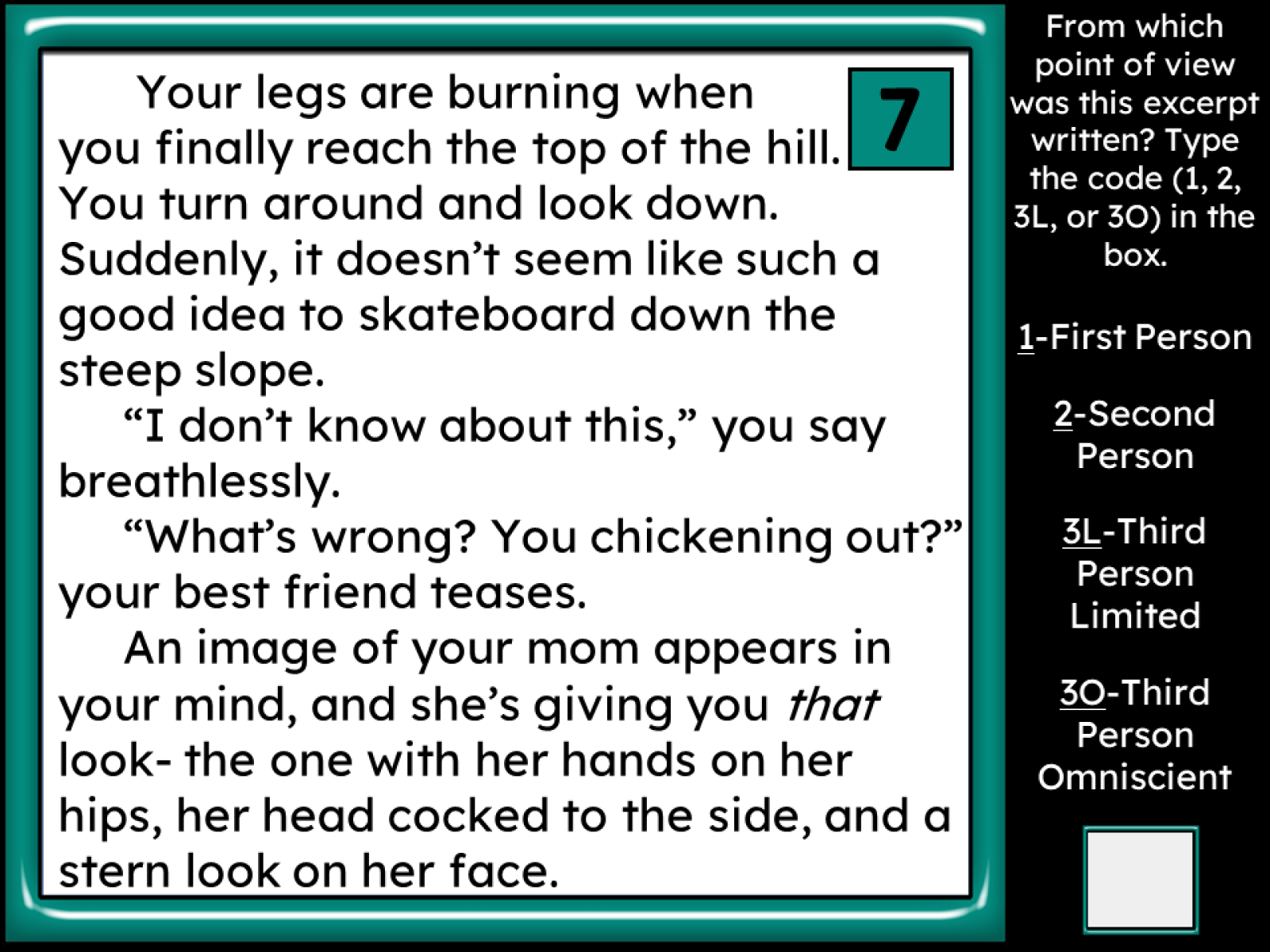 What is the point of view?(Remember to mark out the dialogue and see what pronouns are left.)