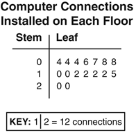 The stem-and-leaf plot below shows the number of computer connections installed on each floor of a business building.