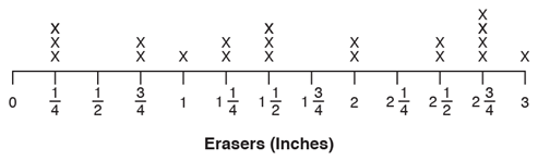 The line plot shows the length of some erasers.