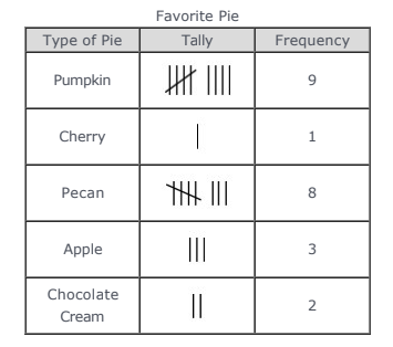The frequency table shown below represents the favorite types of pie for the students in Ms. Blanco’s class.