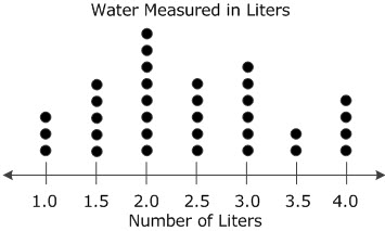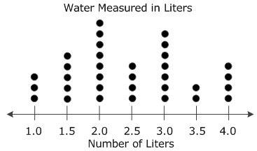 The students in a cooking class poured water into pans for boiling macaroni. The students used different amounts of water. The list shows the amount of water, in liters, that each student used.