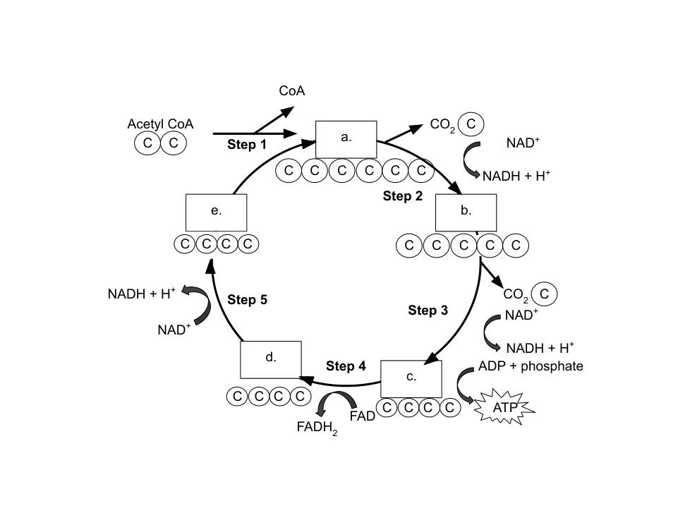 - Citric acid release a CO2 molecule and a H atom to form a 5-C compound.
