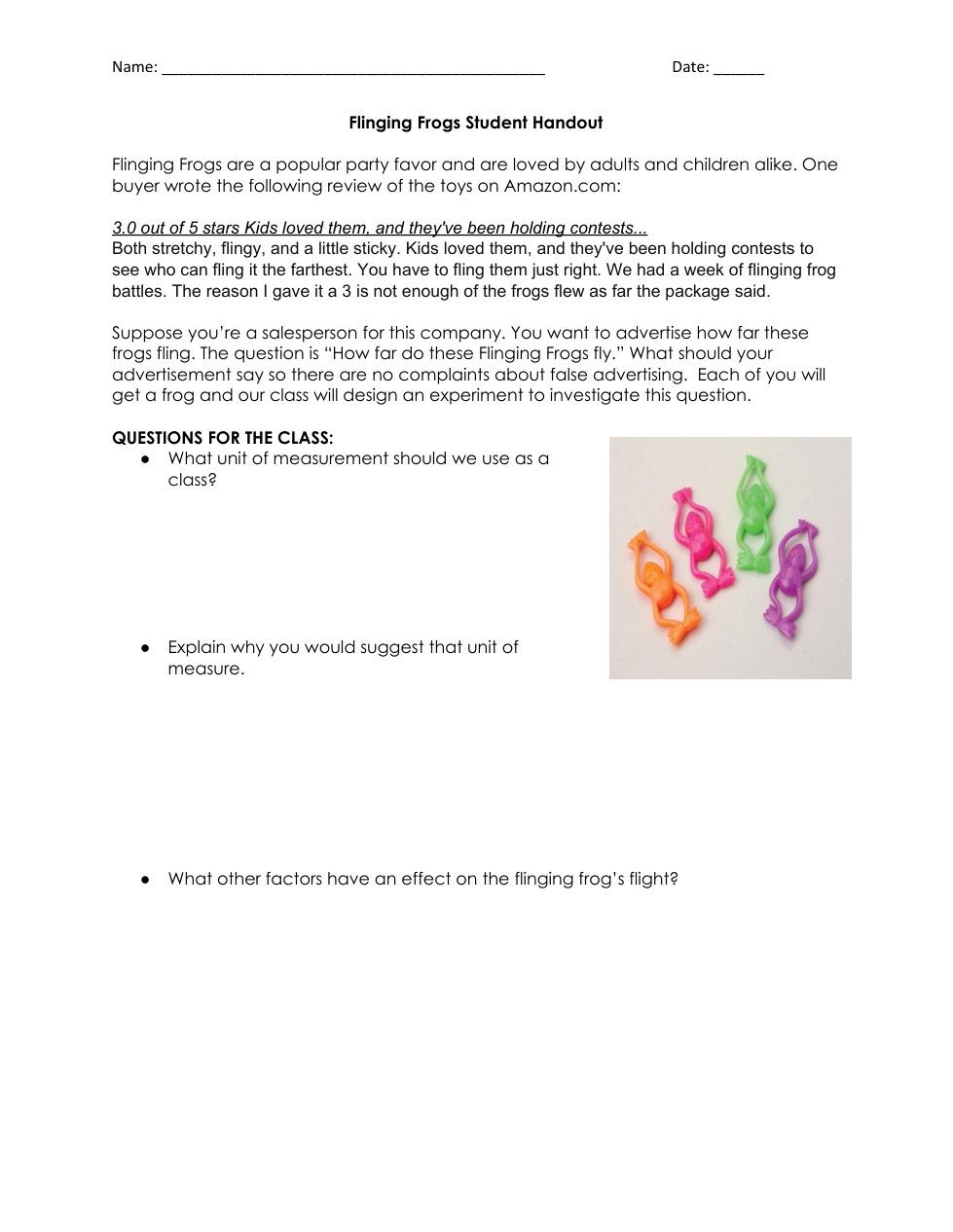 Context 23a - Flinging Frogs Student Handout