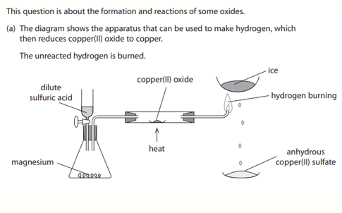 State one observation that could be made when the hydrogen is passed over the heated copper(II) oxide