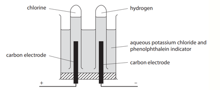 The diagram shows apparatus used to electrolyse aqueous potassium chloride in the laboratory.