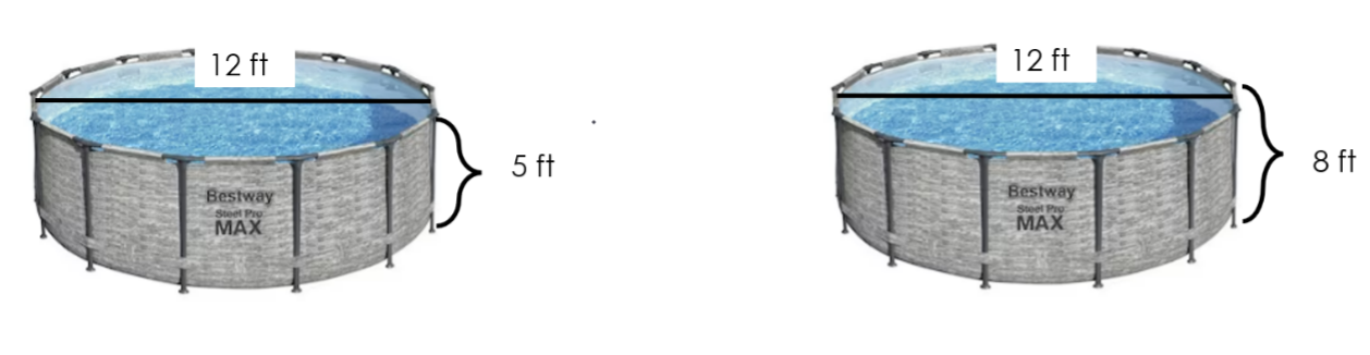 An above-ground swimming pool in the shape of a cylinder has a diameter of 8 feet and is 12 feet tall. Since pools are not filled to the very top, this pool will be filled to a height of 10 feet. What is the volume, to the nearest cubic feet, of the water in the pool? Use 3.14 for pi and round to the nearest tenth!