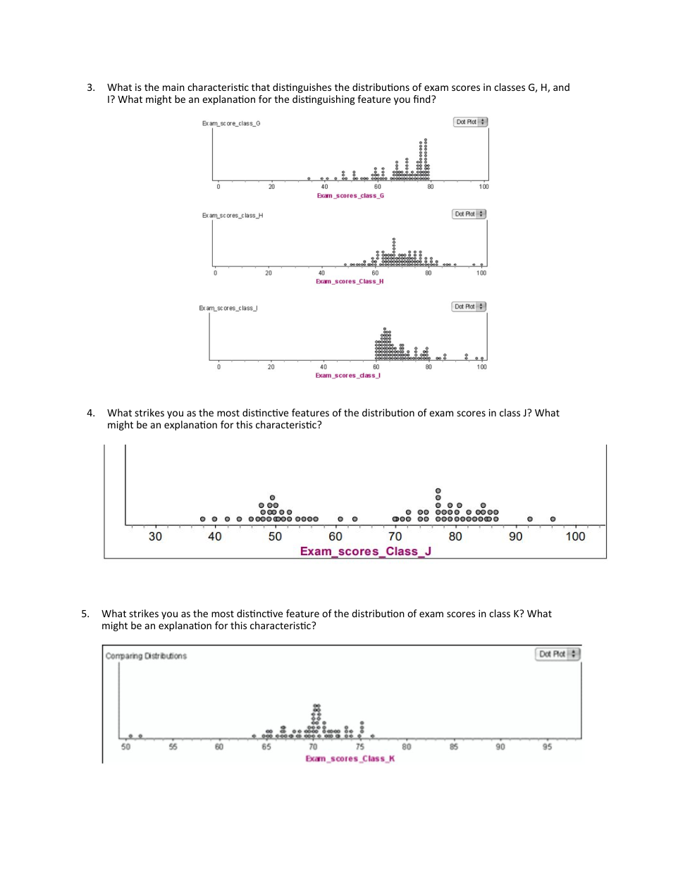 4. What strikes you as the most distinctive features of the distribution of exam scores in class J? What might be an explanation for this characteristic?