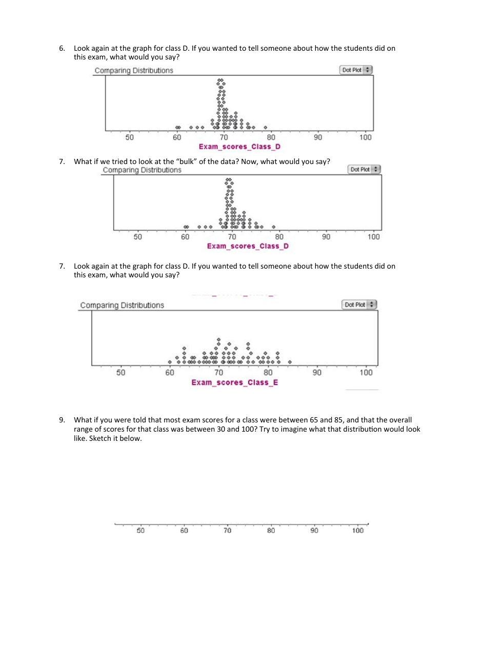 Look again at the graph for class D. If you wanted to tell someone about how the students did on this exam, what would you say?