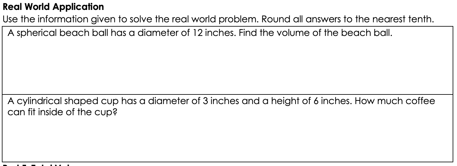 "I CAN" apply the formulas for the volume of 3D shapes to real-world problems.