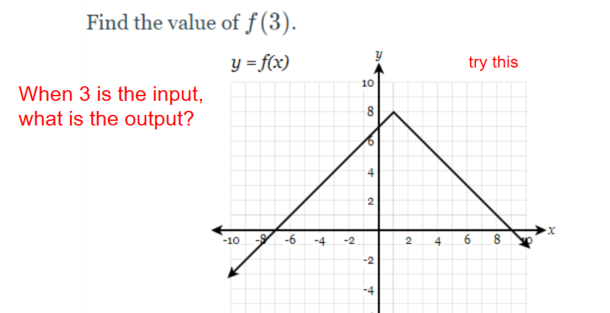 Use the graph to find the value of y when x = 3.