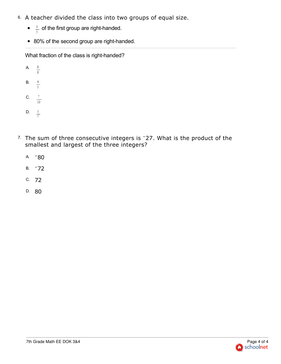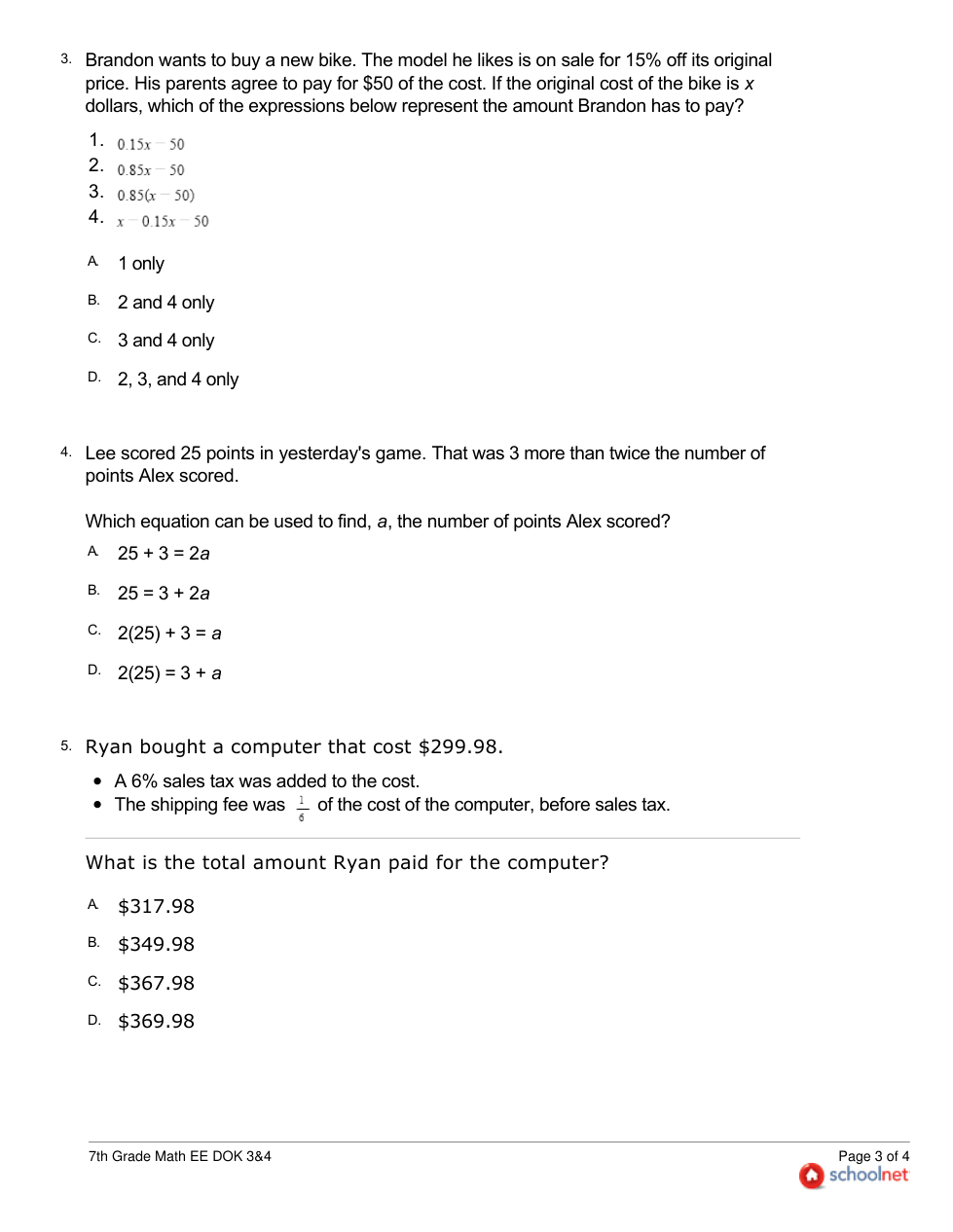 7th Grade Math EE DOK 3&4