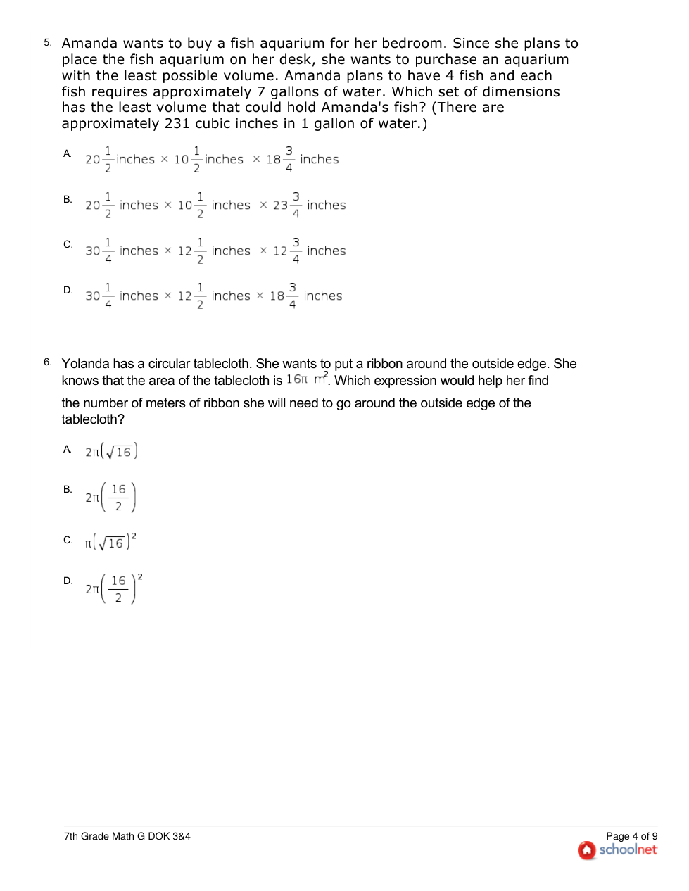 7th Grade Math G DOK 3&4