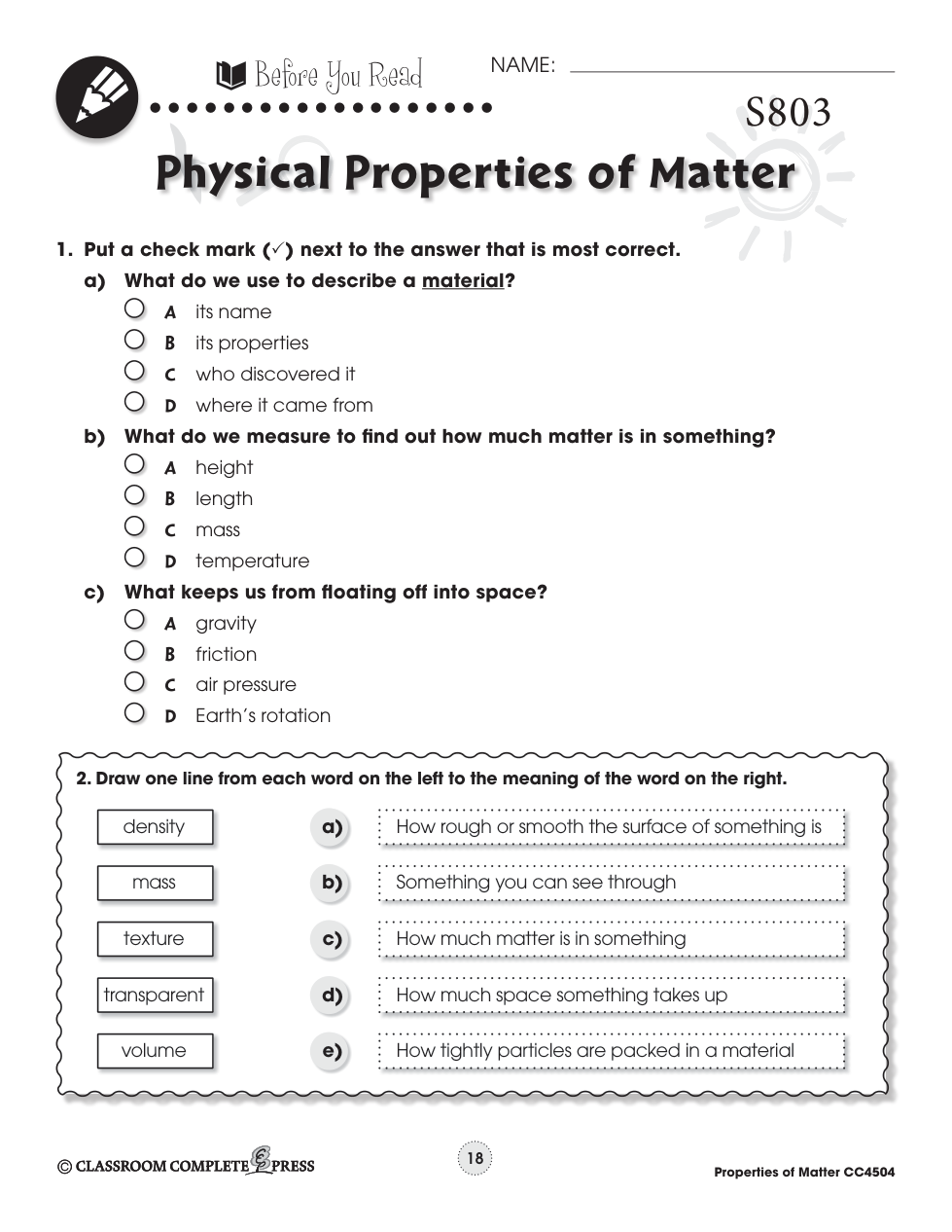 S803 - Physical Properties of Matter - Eisenhower