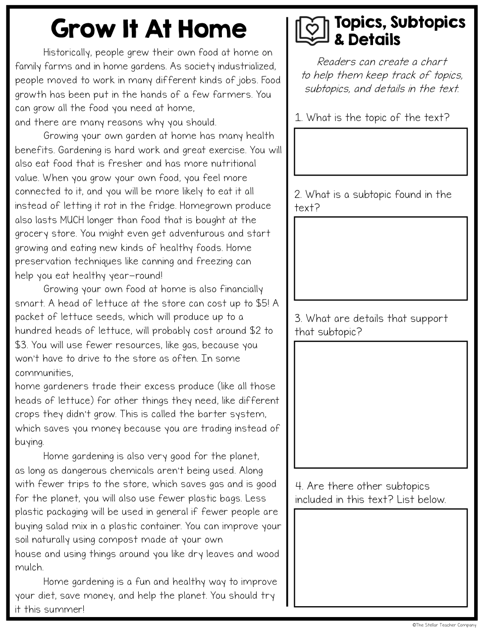 Which three main points from "Grow It At Home" support the author's point that he/she views growing a garden at home as important?