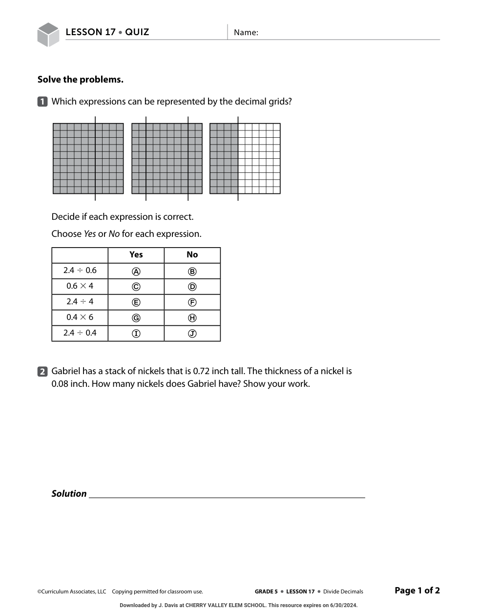 Which expressions can be represented by the decimal grids? Type yes or no for each expression.